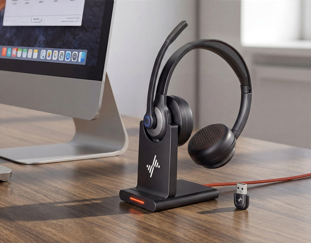 Clear voice-focused microphone, ultra-stable Bluetooth 5.2 with plug-and-play USB dongle, all-day comfort design, and reliable performance for work, calls, and online meetings.