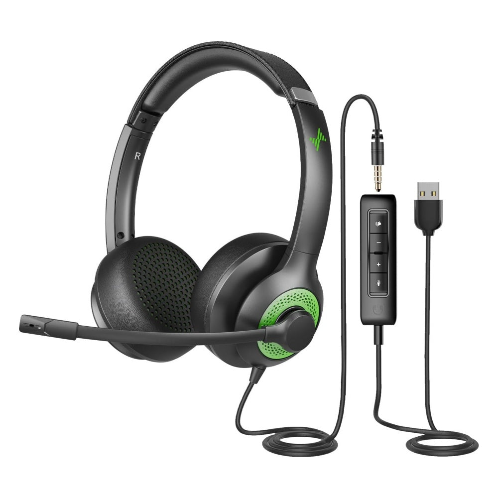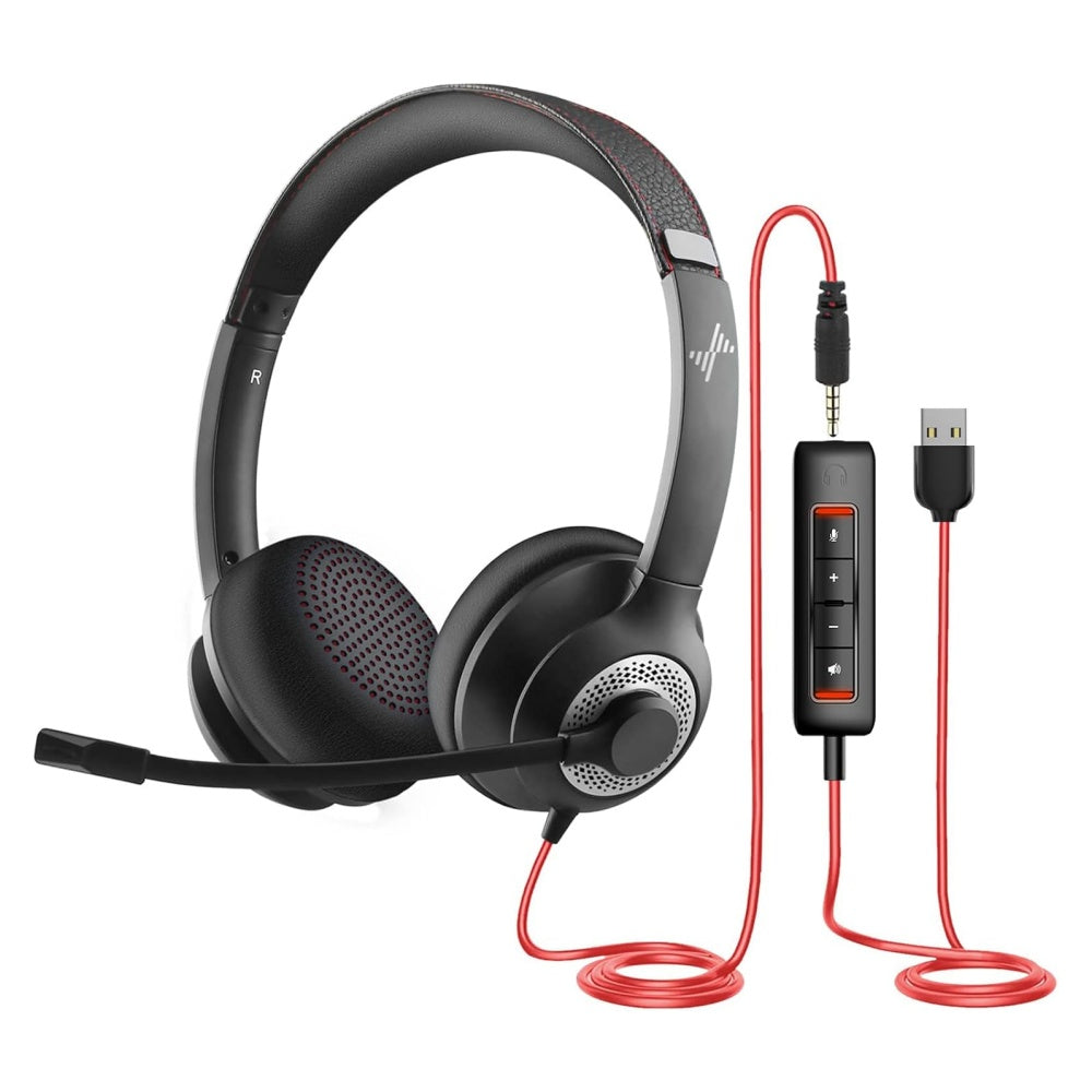 JIAMQISHI EH01 is a quality office usb headset with a unidirectional, noise cancelling microphone. Perfect for today’s demanding classrooms and open office environments. This headset utilizes a single 3.5mm plug & USB Sound Card, and is compatible with PC, Mac, Chromebook, tablet, smartphones, MP3 players, PS5, PS4, Xbox one and most gaming systems with an aux port.