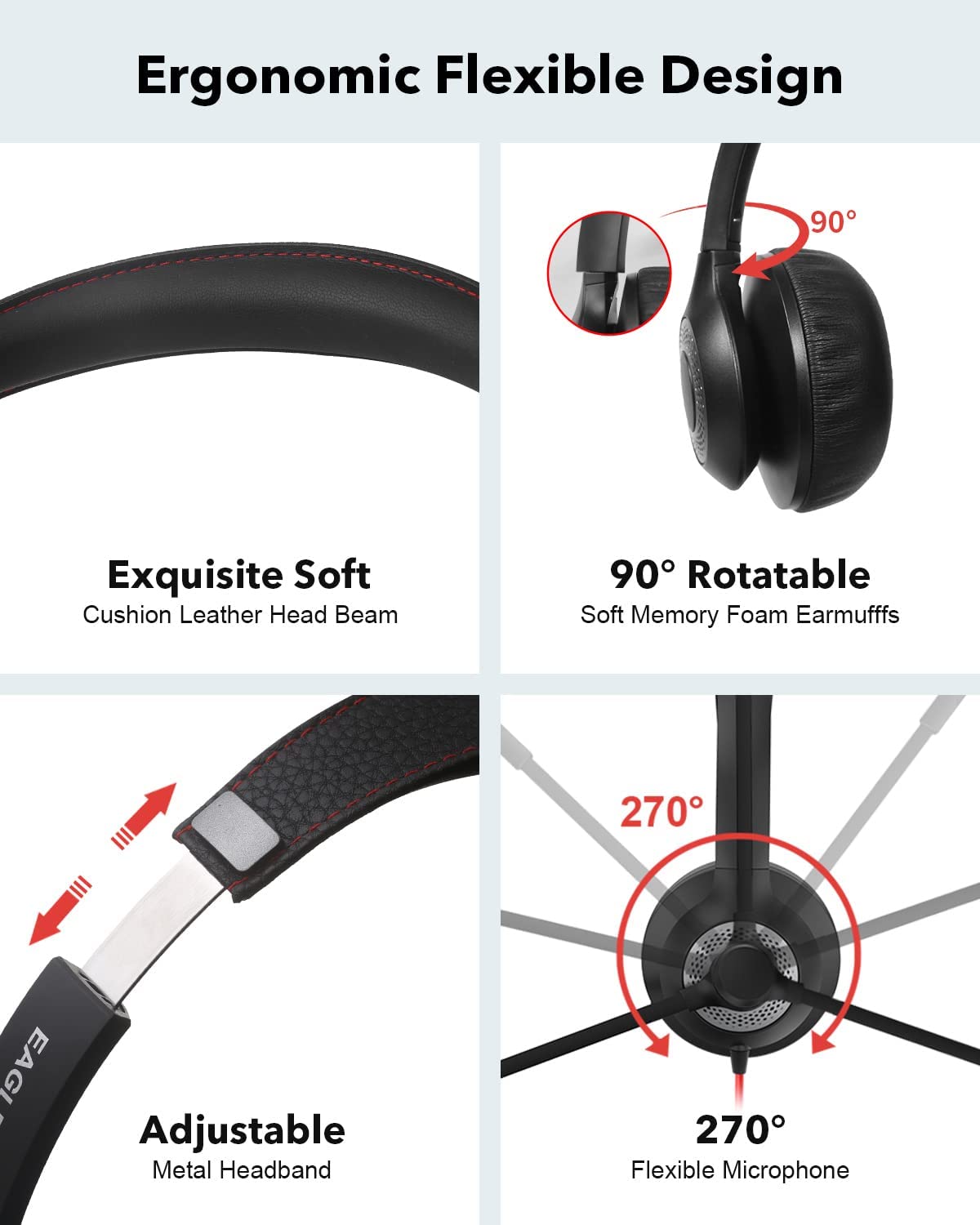 ✅【Enhanced sound performance & 40mm audio driver】:Corded phone headset with built-in audio sound card, Eaglend sound lab tested thousands of times for your daily conversation/music/movie/gaming, bringing you extra clear and bass for pleasant experience.