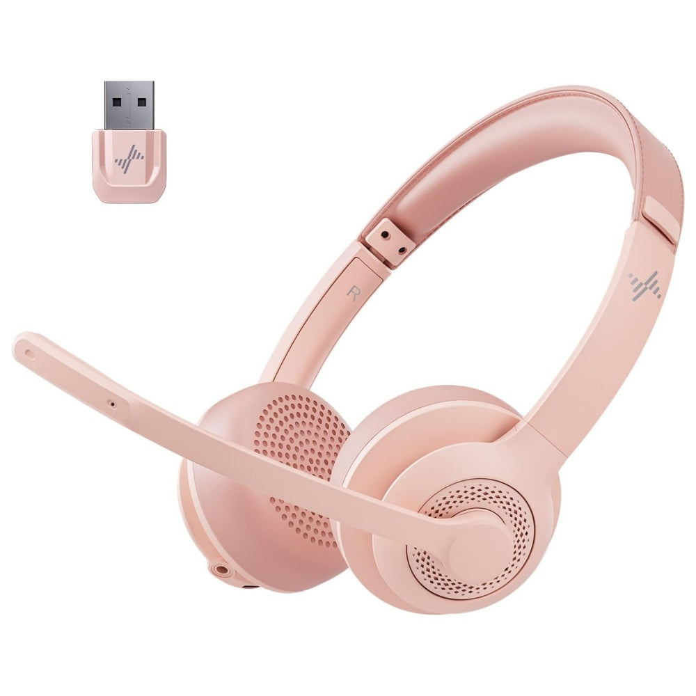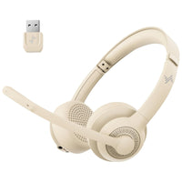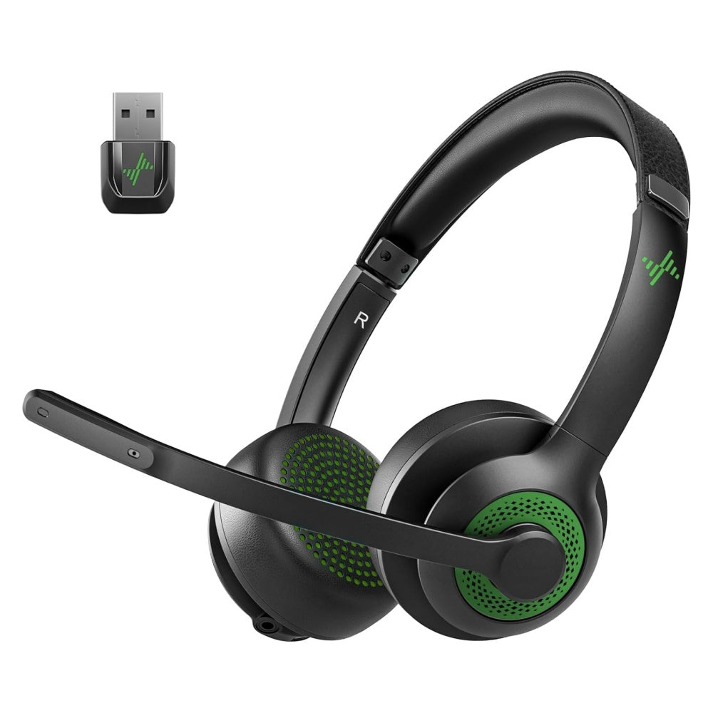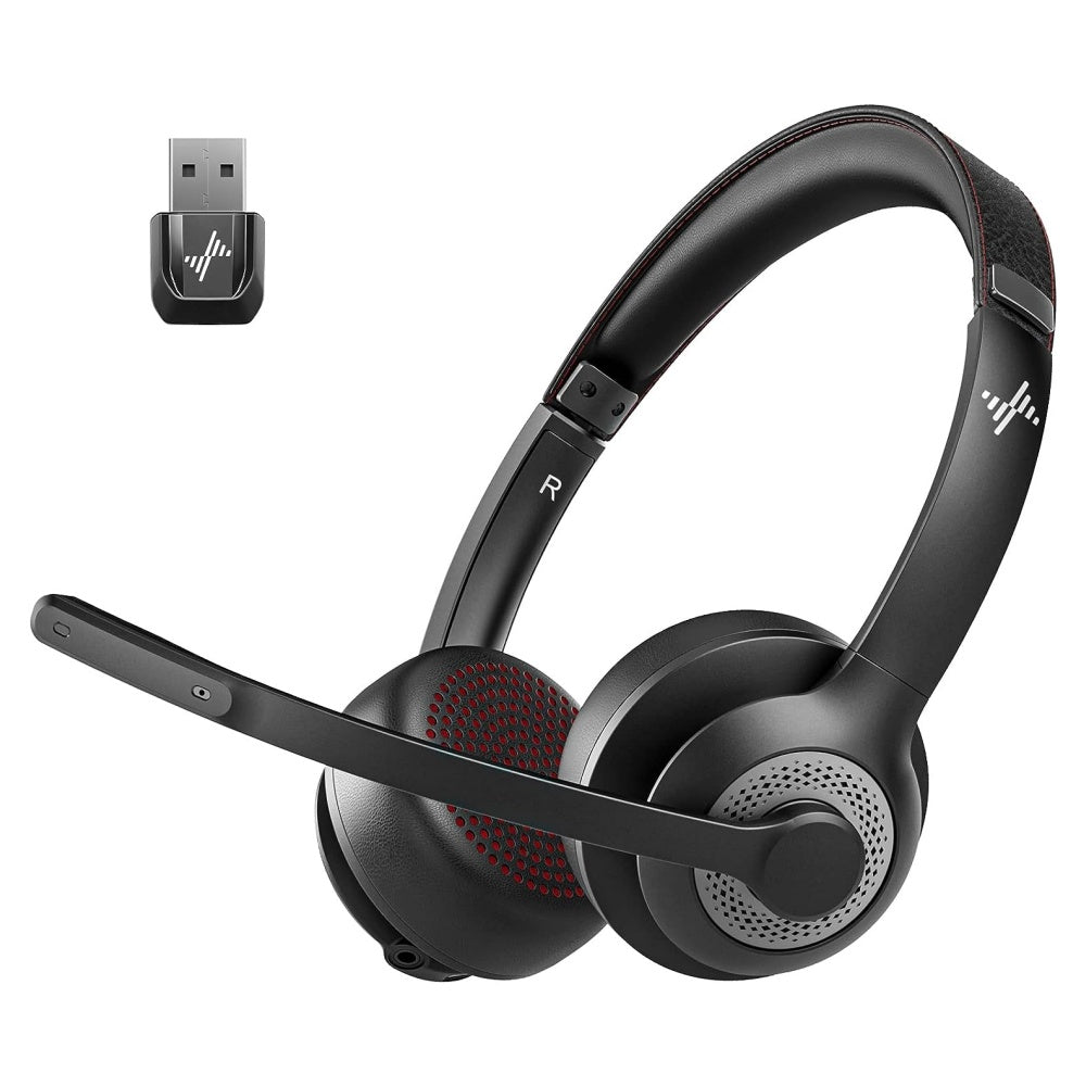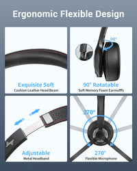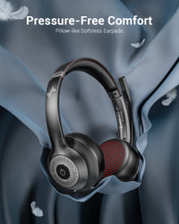 ✅【Adjustable Headset】The padded headband of the wireless headset is adjustable and stretchable to fit your head perfectly, suitable for both children and adults. Soft protein memory foam ear cushions are made with premium breathable material, ROHS certified material prevents ear heat and sweat(The microphone return to home position can mute the function only applies to the call state)